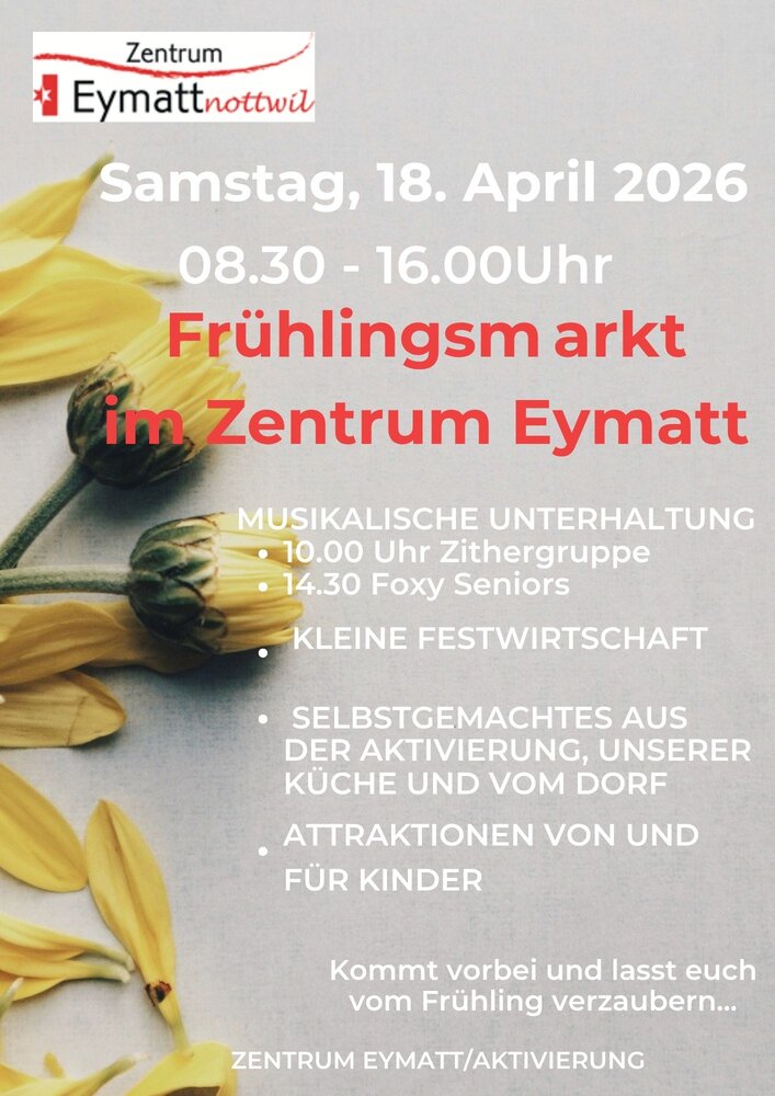findet im Zentrum Eymatt der 1. Frühlings-Markt mit musikalischer Unterhaltung,